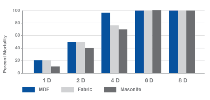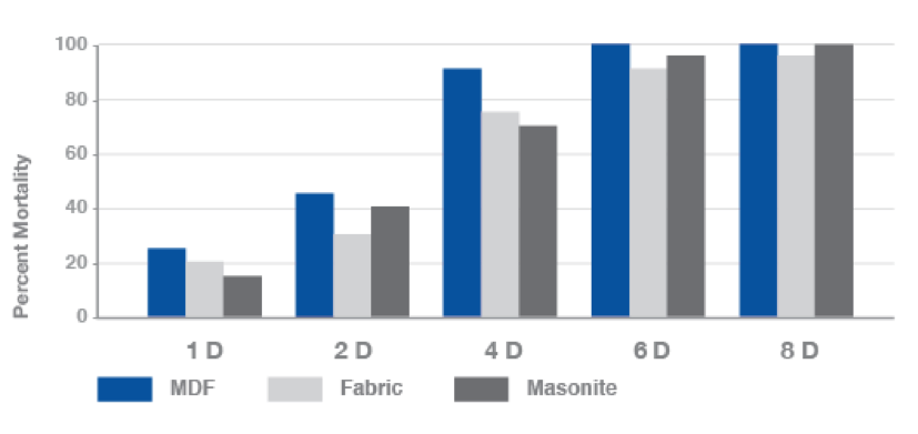 Phantom SC efficacy of 3 month and 6 month aged medium-density fiberboard, fabric and masonite on pyrethroid-resistant CIN1 bed bugs