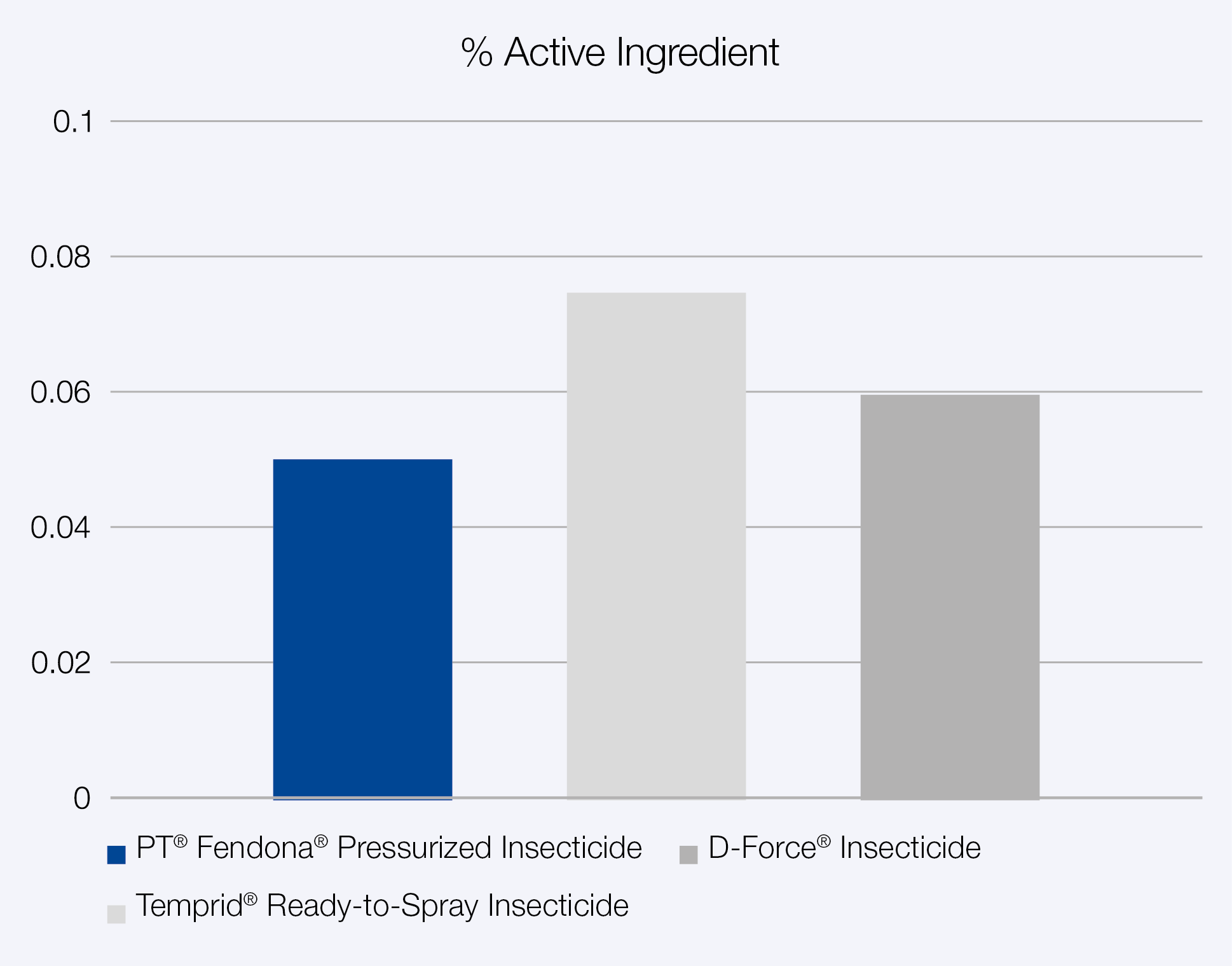 The power of Fendona meets the precision of PT in new PT Fendona Pressurized Insecticide, giving pest management professionals a fast knockdown of key pests, a flexible label, and long-lasting control of house flies and bed bugs even in hard to reach areas. Featuring alpha-cypermethrin—an active ingredient 3X more powerful than cyfluthrin—PT Fendona Pressurized Insecticide is registered for use in residential and outdoor areas, as well as food handling establishments. It is also compatible with System III for the ultimate in precision and professionalism.