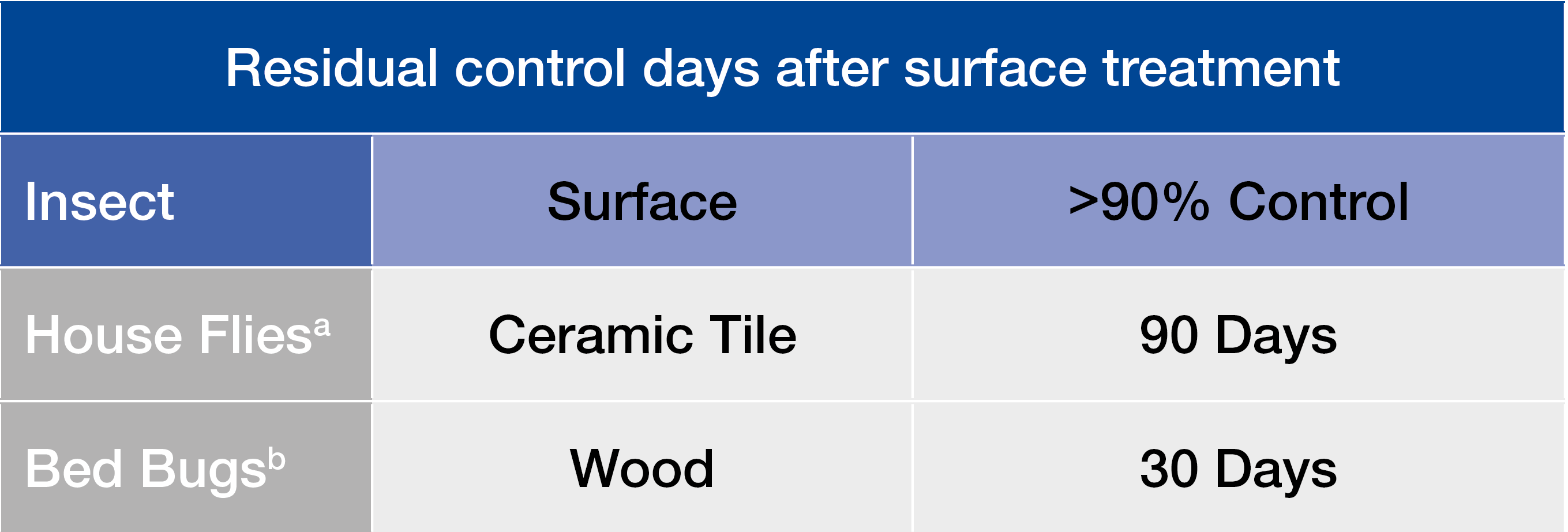 Kills key pests fast with excellent residual activity on houseflies and bed bugs