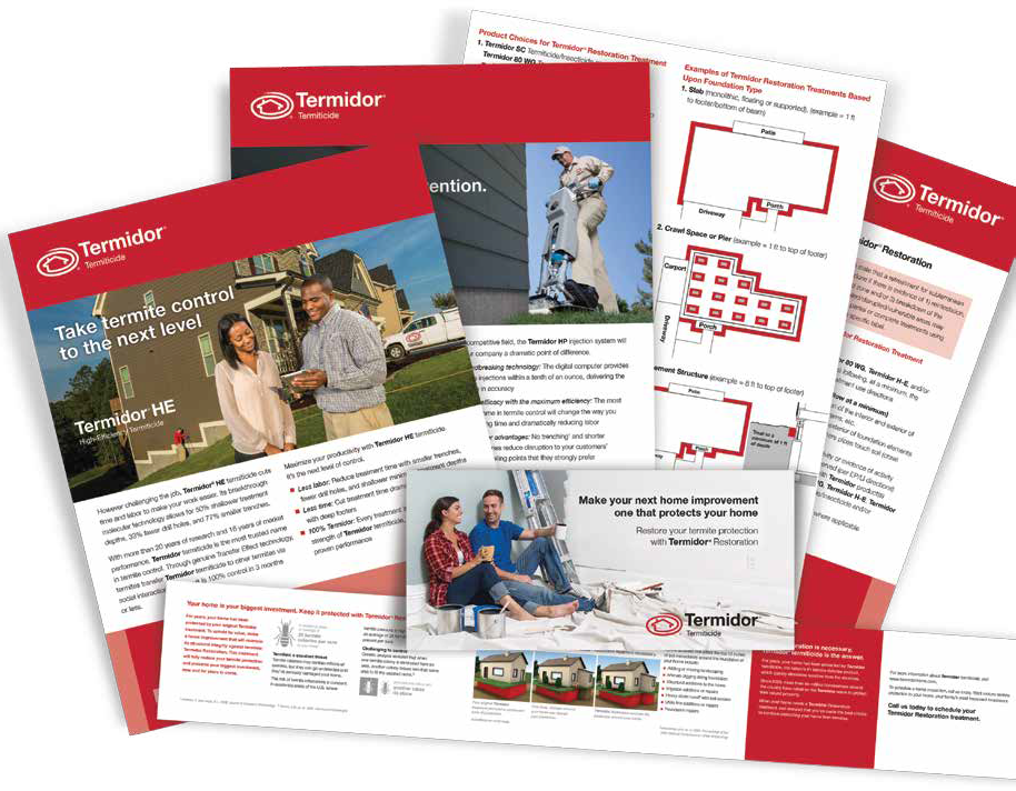 These tools will help you engage with customers, provide information on Termidor products, and further your own marketing goals. Many of the materials can be customized with your company name and information.